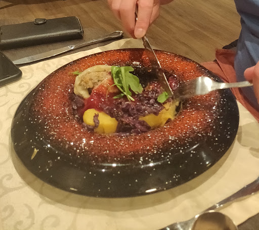 Read moreA fantastic meal, in a beautiful setting. Attention to detail with the menu, food, drinks and the surrounds. We had mignon de porc and choux farci de boef et porc, both were delicious. Starters of foccacia with fresh figs and cheese, Tarte à l'oignon. Desserts of Tarte aux marrons et prunes and homemade pistachio and apricot ice cream with lots of extra bits too! Great value for the quality of the imaginative menu, beautifully presented and delicious food all in a beautiful setting. 😊 (Price quoted included...