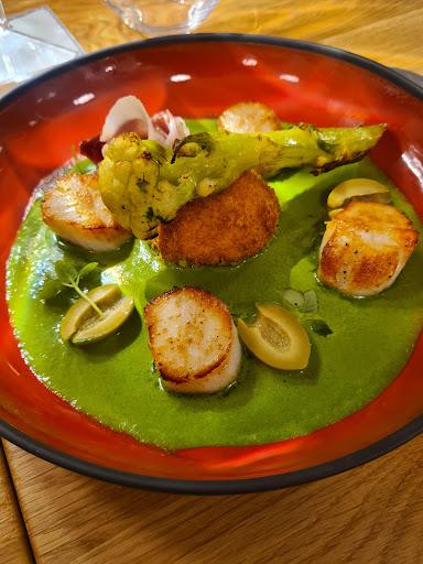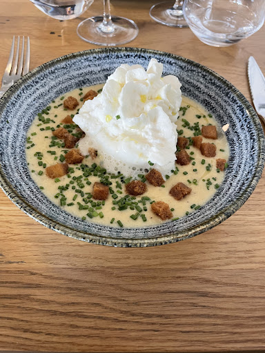 Read moreEn petit comité d'épicuriens, nous nous sommes rendus pour la première fois dans ce restaurant soit disant renommé pour y déjeuner à la carte. L'ensemble de la table avons été très déçu pour les raisons suivantes: ambiance très bruyante, les plats et les desserts pas du tout à la hauteur de l'annonce, exemple des plats: une légère portion de 50 grammes de lieu noir servi sur un croustillant de riz basmati et une bouchée de velouté de choux fleur - une légère portion de 50 grammes de deux petites tranches de magret posée sur une cuillère de patate douce. Quand au dessert comme on dit c'était la "cerise sur le gâteau" : deux rondelles de banane posée sur un léger crémeux et des brisures de spéculos. Face à notre déception, la jeune serveuse nous a répondu, moi je ne peux défendre que mon patron, seul lui peut s'expliquer, d'ailleurs je vais lui faire part de vos remarques, celui-ci ne s'est jamais...
