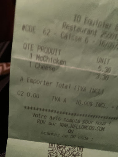 Read moreNous sortons de Walygator et d'Aqualand tout prêt. Besoin de se caler la dent creuse avant de rentrer chez nous dîner : la table est sale, le serveur m'apporte un royal cheese au lieu d'un royal deluxe. Par chance, j'avais pris le ticket de caisse. Je lui montre l'erreur, il me dit qu'il doit aller chercher " quelqu'un " . La " manager" arrive et me demande si ce n'est pas moi qui est demandé un deluxe spécial avec l'enlèvement de certains ingrédients. Copine, ce n'est pas le cas , de 2 je suis obligée de lui montrer que la sauce deluxe n'y est pas ( c'était du ketchup + moutarde). Elle repart avec le royal cheese dans lequel mon fils avait mis un croc et 20 minutes après ma commande je n'ai toujours pas mangé ! Obligée de les relancer. Du jamais vu au MC Donalds. Je comprends pourquoi malgré l'affluence des 2 parcs à côté, il n'y avait personne à la fermeture de ces derniers.