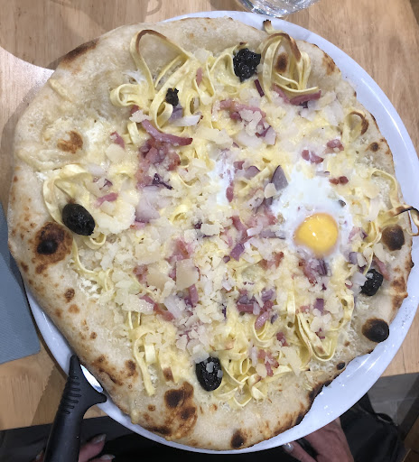 Réservation faite le soir du bal des pompiers pour 6 personnes. C'était un menui spécial à 20€ comprenant un plat, un dessert et un café. Dès que nous avons vu le flyer de la soirée alors que nous avions réservé, nous demandons s'il est possible de commander des pizzas hors menu. Réponse : oui. Pas de bol, on aurait dû préciser pour manger sur place car ce n'était pas la cas. On a pas pensé préciser mais la personne qui nous a répondu aussi. Dessert, tarte aux pommes, strictement aucuns goûts. Ni la pâte, ni le léger lit de compote, ni les pommes encore croquantes. Sur les 6 cafés commandables, nous prenons 2 cafés, 1 deca et 2 infusions. Réponse du restaurant : le deca et les infusions c'est en supplément... Impressionnant ce sens des affaires. On lâche rien, il faut continuer comme ça. Le personnel que l'on sens très très débutant n'en reste pas moins souriant. On ne peut pas en dire autant du patron... L'unique burger à la carte à 18€ de souvenirs n'a strictement rien d'extraordinaire sauf le prix. Less pizzas sont bonnes mais un conseil prenaient les à emporter car le prix au restaurant s'envole comme la taille des pizzas. Dommage, ça fait bcp de points à améliorer car le restaurant à une déco sympa mais on sent que sur la partie restaurant, le client est clairement un porte monnaie avant tout. Et ils ne livrent toujours pas les pizzas. C'est pas grand chose encore une fois mais pour moi ça reste une attention...