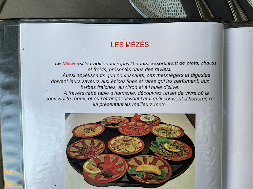Read moreFrom an American abroad: This family owned restaurant is located off the beaten path from the touristy restaurants in a quaint little piazza not far from La Rotonde. We had the Mezze Delices. It is a sampling of Lebanese and Mediterranean cuisine. It's the best of this type I have had. The two owners were attentive and did their best to communicate what the food was even though they don't speak English. It's okay because you know most of these foods if you know Mediterranean food: hummus, stuffed grape leaf, bhaba ganoush, etc. but they have never been this good. The viande and chicken kabobs were delicious and worth upgrading from the Mezze gourmand if you are a carnivore. Well worth the 30 euro because it...