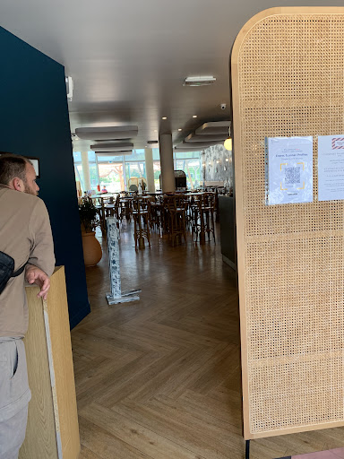 Sans être particulièrement chaleureux, l'accueil est très bien. L'intérieur est très lumineux et agréable. Il n'y avait que très peu de monde lorsque j'y suis passé, peut-être que l'intérieur est moins agréable en cas de forte affluence car les tables sont assez serrées. L'extérieur semble être agréable aussi, si vous aimez manger au soleil (la toile placée pour faire de l'ombre n'est pas très efficace).