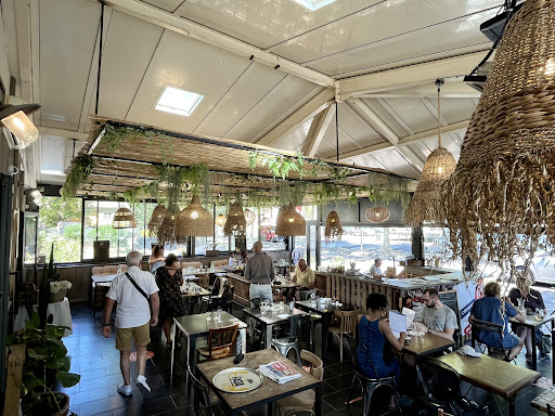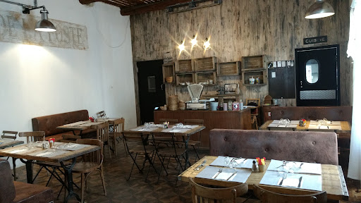 Super déco pour cet endroit qui, sans cela, manquerait d'attrait. Nous avons déjeuné en famille dans ce café, tout à fait par hasard : suite à une panne sur l'autoroute, notre voiture a été remorquée non loin de là. Bien que donnant sur la grand rue, ce café offre une terrasse assez sympa, dont une partie est réservé à la restauration. Nous avons pourtant choisi de déjeuner à l'intérieur, car beaucoup de table étaient occupées (c'était le seul lieu où déjeuner ce lundi de mi-août). Déco sympa, service très agréable, mais nourriture médiocre. J'ai choisi le menu du jour : pauvres crudités insipides, suivies d'un blanc de poulet pas sec, mais sans fioritures (ni goût non plus). Les frites sont servies dans un élégant panier, mais bof quand même. La crème brûlée (pas maison) rattrape le tout. Le burger vegan a l'air plutôt pas mal, je regrette e ne pas l'avoir choisi. Au final, un endroit sympa, mais j'y traînerais plus pour boire des coups que...