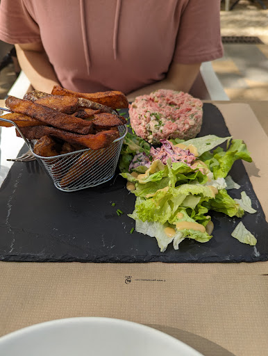 Read moreAyant emménagés depuis quelques mois au sein du village, c'est un établissement que nous fréquentons régulièrement. Nous apprécions particulièrement sa situation géographique en plein coeur du village, sa terrasse , les plats de la cheffe qui changent régulièrement en plat du jour comme aujourd'hui carpaccio de thon basilic avocat mangue , très frais avec le soleil estival qui commence à pointer le bout de son nez mais aussi à la carte des classiques que tout le monde aime : burgers, bavette, salade Caesar...). Cuisine qui régalera...