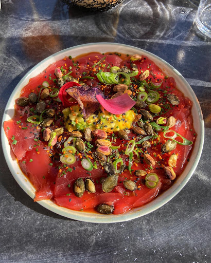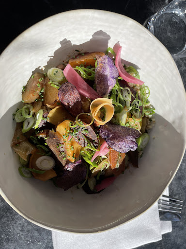 Read moreEnchantée la 1ere fois ... quelle déception la 2ème... un plat tout juste digne d'être appelé " entrée" à 23 euros... 4 tout petits morceaux de lotte à peine tièdes...agrémentés de quelques graines germées et une ou deux cuillerées de purée de courge.. (?)...on est parties avec la faim.... l'assiette était jolie ... mais ça s'arrête là..heureusement que le dessert etait plus copieux ... je n'y retournerai plus ......