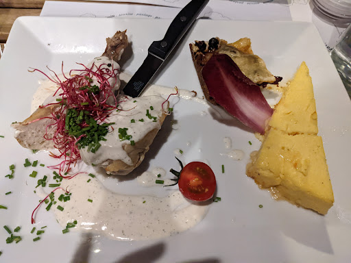 Really wanted to like this place- it was highly recommended by a local and the person who greeted us was very friendly and took the time to explain the menu to us (the menu is on a chalkboard only, which I appreciate because it saves paper). We started with the salmon terrine, which was okay. Perhaps I am just not a huge fan of terrines to be honest. I then ordered the guinea fowl, which I have had at other places before, and it was actually quite disappointing. It was large pieces of mostly white meat that tastes.. well .. like chicken. They didn't bring out some of that tender gamey taste that I have had before, it wasn't even seared to bring out any flavors- it tasted like steamed chicken with non-crispy skin and smothered in goat cheese sauce that didn't save it at all. Paired with a cold polenta cake and a cranberry bread like side that was also not very good- this dish was honestly very disappointing in terms of flavor. Maybe I chose the wrong thing ... I would probably recommend anything but the guinea fowl. The service was great though.