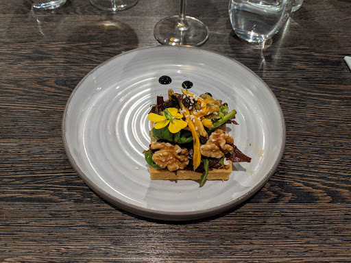 Read moreLe service est agréable, les plats sont bons mais restent simples sans grande originalité. Quelques erreurs qui justifient la note ... Pas de carte de boissons, difficile de choisir entre 4 whisky sans en connaître les prix... une ribambelle de bières exposées mais ah désolé on ne les vends plus... En entrée, le pancake est brûlé d un côté, on vous le sert côté net, au cas où vous ne le remarqueriez pas.... La pluma perd malheureusement son "goût de noisette " vu qu'elle est elle aussi servie brûlée et qu'elle ne peut apparemment pas l être autrement selon le chef... toujours servie côté non brûlé au cas où... sauf que là le goût du brûlé est vraiment gênant, amer et gâche les saveurs même si l intérieur lui est rosé . On ne peut pas me la faire cuire autrement que brûlée mais on me propose de choisir un autre plat. Je suis déçue, j en avais vraiment envie... Je m efforcerai de la manger en essayant de retirer les parties brûlées. Mais, encore une erreur, l assiette étant repartie en cuisine plusieurs minutes on me dit qu on va me la réchauffer en me repassant la viande sur le grill. Je suis un peu surprise de cette re cuisson sur une viande déjà cuite (et brulée) et qui plus est qui avait été tranchée pour le service ... mais ça ne choque personne , alors j imagine que je suis trop exigeante...et évidemment on me réchauffe aussi le risotto minute... la viande même retirée de ses parties brûlées gardera malheureusement son goût prononcé de brûlé Et dernier point, la forêt en "trompe l'œil " est pour moi plutôt une forêt noire destructurée ou alors j ai manqué quelque chose. Question de mots mais leur choix est aussi important en cuisine ... On m offrira le cocktail pour la...