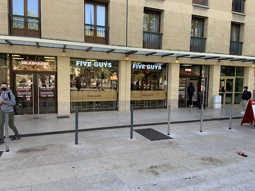 Read moreGreat place for burgers. Burgers are higher quality than other fast food restaurants, French fries are good. Totally love how they tell you where to potatoes come from for the fries on a given day. the customer service is pretty good too. Finished a little bacon cheeseburger with grilled onions, lettuce tomatoes, mustard and ketchup rather quickly. Quite filling! Glad I didnât order the bigger one. The peanut butter milkshake was really good too. Although the milk shake cups are decent size for Europe, my milkshake was slightly less filled than my wifeâs. Could have said something but just thought it was too much trouble. Maybe they should have a standard amount that comes out of the machine ? Overall, we love coming to this 5 Guys to get a little American fix from time to time. Do we pay for it? Yep! Drive from Marseille, and the cost is higher than other fast food restaurants. But we think itâs a great little burger date from...