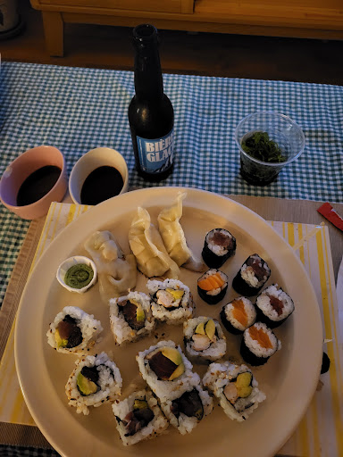 Read moreOn souhaitait se faire une soirĂ©e sushis une fois les enfants au lit et Ă proximitĂ© peu de choix. Mais nous avons aimĂ© celui-ci. Un autre Ă©tait plus proche mais aussi un peu plus cher. Les prix restent Ă©levĂ©s mais correct. Et globalement nos choix Ă©taient bons et bien garnis, juste 2 "bouts" de maki qui Ă©taient moins garnis. Le service est rapide, Ă emportĂ© pour nous. Mais dans tous les cas mĂȘme s'il y a des tables, ce n'est pas vraiment un endroit pour manger sur place car ça ressemble plus Ă un food truck avec quelques tables mais sur parking d'un centre de lavage, y'a mieux comme ambiance. Donc oui c'Ă©tait un bon choix, peu s'amĂ©liorer sur certain items, mais globalement c'Ă©tait bien et on...