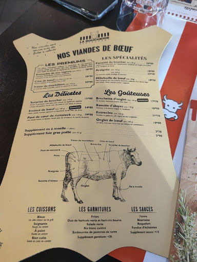 Read moreBonsoir clients ou futurs clients, ce restaurant est une tromperie à lui seul. Belle carte en cuir dans le style boucherie, avec un panel de viande au choix charolaise et Française (surgelés mais non précisé)...Ce soir nous y avons mangé avec ma femme, qui a pris une salade de chèvre a 16€90 sans oeuf dur et lardons ( en supplément). Pour ma part, j'ai voulu une côte de boeuf RUPTURE, une entrecôte alors RUPTURE, bon je regarde, je prends une bavette 320g bleue, immangeable (cuite entre saignant et appoint), je demande au serveur l'origine de la viande, il me dit Allemagne. Non précisé sur la carte origine Française et charolaise à 26€90. Je recommande une hampe 400g à 30€90, encore pire, froide et hyper mastic, je n'ai mangé que les frites surgelés. J'ai demandé à voir le responsable du restaurant, il ne pouvait pas me voir car il est en cuisine. Je l'aperçois en arrière plan, j'échange avec ce soit disant boucher et cuisinier diplômé qui me fait comprendre sans excuses mais aucunes qu'il sans bas les....steaks. Nous avons payé 79,90€ pour une salade, une bouteille de vin rouge, 1/2 rosé et une poignée de frites surgelés. JE NE RECOMMANDE ABSOLUMENT PAS CE RESTAURANT AVEC CE DIRECTEUR CUISINIER INCOMPÉTENT ET IRRESPONSABLE, qui ce fiche royalement de sa clientèle....