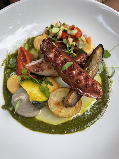 thanks for giving me one of my favourite dining experiences in such a beautiful location. Quiet and subdued, a warm evening nicely lit and gorgeous food coming out of the open gantry. We all ordered something different and tried each others dishes, the steak, seabream and octopus were all wonderfully presented and very flavourful. The steak we agreed, was the standout. The wine paired well and we couldnât help but get dessert. Good ice-cream on such a warm evening.