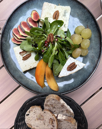 This is a small bistro which is run by a multi-generational family. Everybody in the family seemed to be working there during our visit. Our waiter was just great and his friendly enthusiasm shone through which really impressed us; and bears well for the future of this long-established restaurant should he stick with it. We sat outside and didnât go in, and from our view it is quite a small place. We liked the menu of simple French cuisine (though we were not sure about the PokĂ© bowls, which we didnât select). Our mains of veal and beef with local seasonal veg were superb (in my enthusiasm, I forgot to take photos). The wine list was quite limited but we were very happy with our selection (it was probably the best wine we had on our trip). We opted for a cheese selection and a dessert to share. The cheeses (from the local market) were fantastic. We found the dessert to be too much, but we persisted and finished it.