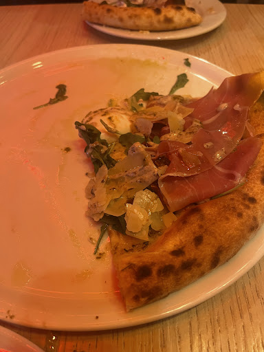 Read moreNous y avons déjeuné avec mon mari ce samedi midi. Enceinte de 7 mois nous avons commandé 2 coca et 2 pizzas, rien de particulier. A l’arrivée des plats, au moment de nous servir la jeune serveuse m’a renversée la pizza dessus. Nous sommes restés très calme la serveuse étant très gentille un accident peut arriver. Forcément sortant du four je me suis brûlée le doigt, après avoir ramassé bouts de jambon et champignons qui étaient étalés sur mon pantalon la serveuse me demande simplement si je souhaite une nouvelle serviette. Un peu outré mon mari lui réponds qu’on souhaiterait surtout une autre pizza. La serveuse revient avec une autre dame nous avons donc supposé une soit disante responsable hautaine et extrêmement désagréable à la limite de l’irrespect qui était très agacé de notre demande car la pizza n’est pas tombée par terre après tout mais uniquement sur mon jeans et mon pull en laine. Après de très longues minutes d’attente, nous avions quasiment terminé celle de mon mari la dame est revenu en disant qu’elle pouvait rien faire car plus personne pour faire les pizzas. Il ne nous a pas été proposé de nous offrir un plat de pâtes ou même un coca. Avec mon ventre énorme nous avons donc été au restaurant pour manger une pizza à 2 🤣 Au moment de payer les 2 responsables sont restés des plus désagréables, aucun geste commercial et aucune excuses. J’ai donc passé ma journée tachée d d’la tête au pied, 3 jours après j’ai toujours une cloque sur le doigt et j’ai du jeter le pantalon que je portais car après 2 lavages celui-ci était encore plein de gras. Passez votre chemin des pizzerias il y en a chaque coin de rue, la nourriture n’étant pas exceptionnel vous trouverez une petite pizzeria chaleureuse, ici il s’agit de charlatans uniquement là...
