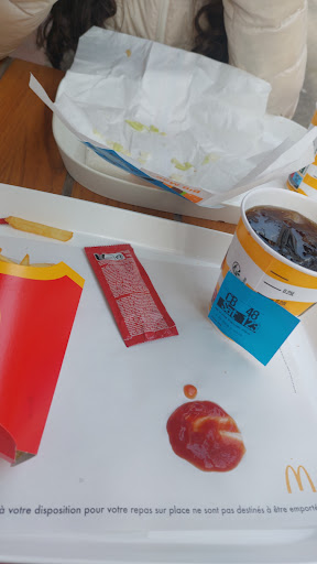 La nourriture : Test fait à deux reprises après le premier passage où j'ai été surpris encore une fois.. (Cela commence à faire beaucoup, je vous avoue!) Que vous preniez un menu normal ou grand, vous aurez le même nombre de frites ou potatoes (Ce sera joint, à la Direction France avec photo à l'appui). Les boissons, trop de glaçons en Hiver!!! (petites économies=grande insatisfaction client) Le reste n'est pas mieux, trois passages = trois erreurs (dont une fois où la commande a complètement disparue?) Deux fois sur trois, pas de serviettes...
