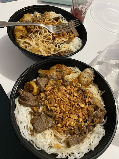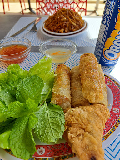 Amazing Cambodian. Had loklak and bauban or something. One with a fried egg rice and beef and brown sauce , the other with noodles, carrot, peanut and beef - and spring rolls - and a bit more chilli. Ordered more chicken spring rolls. Simple and...