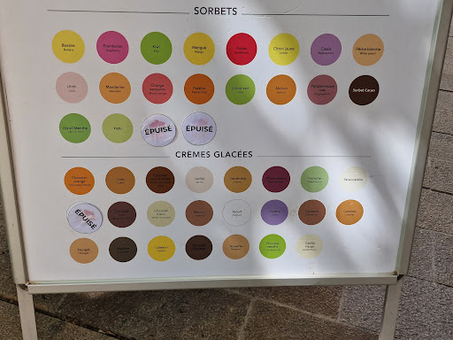 Je suis venue hier après-midi, vers 16h, et il ne restait que 6 ou 7 parfums disponibles — dont seulement 3 en glace au lait. Un choix très limité malgré le large choix proposé sur la carte et pour une enseigne de cette renommée.