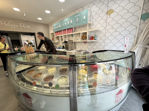 Read moreDe l'extérieur une boutique qui ne donne pas envie. La propreté à l'intérieur est négligée, les bacs à glace ne font pas envie mais nous avons quand même goûté les fameuses glaces du maître glacier Philippe Faur. Rien de fou... le sorbet pamplemousse est très granité, le melon idem Je ne parle même pas de l'accueil des 2 serveuses (ne les qualifions pas de vendeuses car pour cela il faudrait qu'un accompagnement ou des conseils soient délivrés. Sans compter la scène dont j'ai été témoin Une des vendeuses sort la poubelle revient et sert un granité sans même prendre le temps de se laver les mains, fait tomber le couvercle du granité et le pose dessus 😱 où va-t-on ? Elle aurait eu le temps de se laver les mains étant donné qu'il n'y avait...