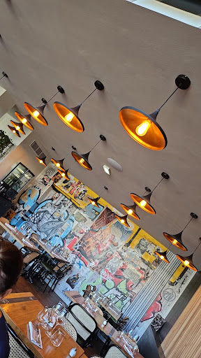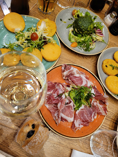 Read moreLe cadre est l'ambiance sont sympas, c'est ce qui nous a donné envie de nous arrêter... Mais vraiment deçue du reste... Nous avons vu au moins personnes differentes a notre table. Pas un visage de référence... Un qui installe, un qui prends la commande, un qui emmene les boissons, un qui reprends la suite de la commande (ouf on l'avait deja vu ?!), un autrz qui emmene les plats, un autre qui debarrasse.... Tellement dommage ! Pour mon mari des pâtes dans la meule (qui est censé etre quand même un plat "show" on pensait avoir la mise en plat mais non... Bon c'est pas grave apres tout...) mais bon a 18€ les linguines au fromage ça fait mal.... Pour moi un paleron de bœuf confit au jus corsé avec des potatoes persillées... Un jus qui n'en est pas un... Une texture tres epaisse type sauce... Et qui n'est pas spécialement corsé, avec des pommes de terre rotîes.... (ou sont passées les potatoes?) a 26€ je pensais au moins avoir le droit d'etre au courant d'un changement dans mon assiette.... Les desserts ensuite... Une pavlova aux fruits rouges avec 3 framboises et 4 myrtilles ! Blindé de coulis fruits rouges.... Alors oui le format est genereux... Mais la meringue et la chantilly ce n'est pas ce qui coute le plus cher... J'attendais un peu plus de fruits pour 10€.... La tarte tatin de mon mari etait bonne mais n'avez pas le reelle gout d'une tarte tatin... Le tout pour 82€.... Et nous...
