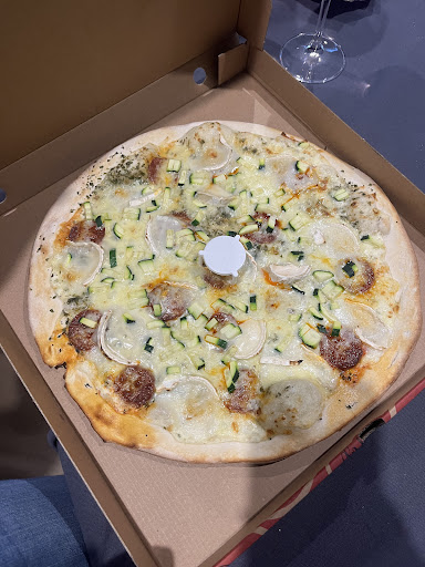 Read moreGénial. 4 ans qu'on a découvert cette pizzeria et c'est toujours le même plaisir d'avoir des gens prêt à tout pour vous faire plaisir. Les produits frais, les garnitures toujours au top, Le petit 'bonjour' personnalisé et le petit 'Bonne soirée' même quand c'est le coup de feu. J'ai assisté à des mises au rebut juste pour un petit bout de pâte à peine déchiré pendant les manips au four. On a essayé quasiment toutes les garnitures et il y en a une petite quinzaine qu'on reprend à coup sûr. De temps en temps, il y a une pizza 'spéciale' à durée limitée. C'est impressionnant de voir une équipe soudée dans des coups de feu presque permanents. Rarement, on a eu la pâte qui a eu un coup de chaud mais quelle importance. Le travail à la main, en direct, sans machine... l'erreur est humaine et quand Fany (la responsable des gourmandises) s'aperçoit d'une erreur, elle se confond en excuse et refait le travail. La seule difficulté, oui, il y en a une, c'est de devoir attendre notre tour quand on est au comptoir avec les pizzas qui tournent autour de nous :) Bravo à toute l'équipe et nous vous souhaitons le meilleur pour encore très longtemps. J'oubliais qu'on a essayé d'autres pizza et... sans problème, on...