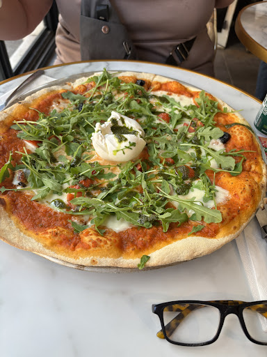 The pizza was the best I’ve ever had. A awesome base that did not collapse and cheese that just would not separate even with a knife! Luxurious and beautifully put together on a great black rustic plate.