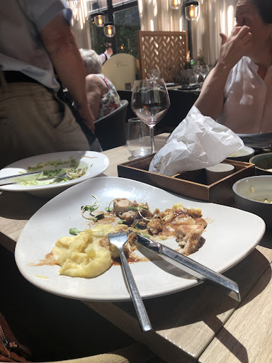 We were sat at a table where the lightbulb was missing. We ordered the €45 set menus. Although my husband enjoyed his starter (foie grae), we both agreed that other starter and main dish (tuna) had a bitter after taste. We weren't able to eat most of both. Although we ordered opposite main dishes so that I would not be given pork (my only dietary restriction), they served me the dish with pork.