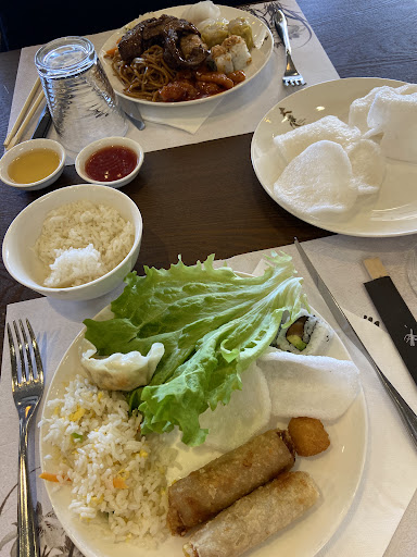 Food was good for the price , there was plenty of choices for a buffet for all tastes, dessert was simple. The only down for me was the wok . You can chose from a great selection of vegetables ,fish,meat,noodles, and there is even tofu ... but when you get to the chef for the cooking, he boils it first in a very large pot of water , using a sieve ( same water for everyone, so all juice is getting mixed up ) Then puts it fully cooked into the wok with the chosen sauce. So it's all soggy , fish all broken, octopuss all chewy and tastes...