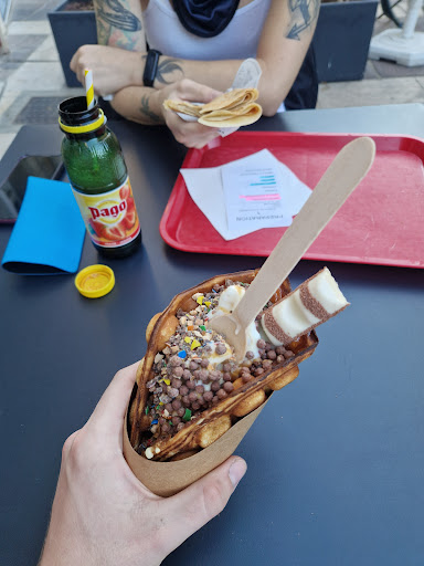 Je prends une gaufre aux crudités (bubble Waffle, inconnue au bataillon) ma compagne une crêpe au Nutella. C'est bon, fait maison et ça se sent! La recette de la pâte à gaufres au Blé noir est clairement au point. Moelleuse équilibrée pas trop sèche, juste comme il faut.