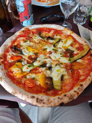 Déjà la pizza n'est pas au feu de bois alors même que le prix de la pizza n'est pas donné mais bon d'accord je me dis que la qualité sera quand même là ! et le serveur me le confirme justement "la pâte vous verrez ça compense le fait qu'elle ne soit pas faite au feu de bois !". Rien qu'en découvrant les pizzas à la maison stupeur c'est quoi cette pâte? j'ai jamais vu ça ! alors le restaurant se justifie en me disant que les marques sombres sont liées aux farines. Je veux bien le croire mais c'était juste immangeable la pâte n'était ni moelleuse ni croquante juste indigeste immangeable !!! mon mari en a même vomi et on a dû jeter les deux pizzas et en recommander ailleurs.