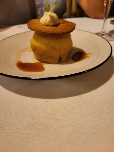 Ce restaurant est clairement une pépite ! Ce fut une agréable découverte pour mon conjoint et moi même ! Mon conjoint a commandé un menu entrée/ plat/ dessert : beignets de patates douces au chèvre / porc cuit à base température accompagné d’une purée de pomme de terre maison / fondant au chocolat et glace vanille avec des morceaux de clémentine Et pour moi un suprême de volaille fourée aux cèpes avec ses petits légumes et une purée de pomme de terre également et en dessert un banoffe déstructuré. Sincèrement la qualité des produits et du savoir faire se ressent je recommande à 100% Nous avons eu le droit de déguster deux amuse bouche offerts par la maison : tapenade d’olive INCROYABLE et une petite soupe à base de butternut, de champignons et d’agrumes. De plus, le rapport qualité prix est juste fou a peu près 40€ par personne ! Je n’ai aucun aspect négatif à trouver à ce restaurant, le serveur était au top, il connaissait les plats qu’il servaient à la perfection était attentif aux besoins, le cadre est très sympathique. Nous habitons Ajaccio et nous reviendrons avec plaisir, cela vaut le déplacement ! Merci beaucoup pour cette expérience si agréable que nous avons déjà hâte de renouveler !