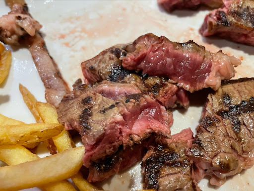 We stayed in the hotel near this restaurant. I felt nice smell of meat in the evening thatâs why decided to visit. Restaurant has interesting interior, and itâs clean inside. The waiter who served us didnât speak English, although there are 2 hotels nearby and visitors are not only French. Not all dishes from menu were available. We ordered entrecĂŽte cooked medium well and and fried pork. The beef is good quality but cook spoiled meat. Rack on which meat was fried was dirty because I could feel the old burnt fat, it happens if you donât clean fryer for a long time. Also cook didn't hit the right degree of doneness. Pork was dry and without any spices. When I asked bill, waiter asked me to go to bar counter. I was waiting few minutes because nobody was there. There is KFC 100 meter amay, better...