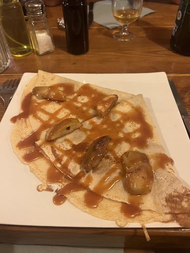 We came here with a huge group thinking it would be a problem, but the owner was super friendly and welcomed us in, he even played guitar for us. The food was incredible, I highly recommend the crèpe “pomme caramel...