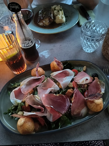 Read moreJe suis confus d'écrire un tel avis pour un restaurant affichant plus de 4 étoiles au départ. Mais quelle déception pour ma part. J'ai pris en entrée le foie gras que j'ai partagé. Deux tranches somme toute classiques avec un petit pain rond toasté et des oignons réduits, le tout pour plus de 20€. Je m'attendais à plus. Et pour le plat je ne sais trouver les mots, un fiasco complet. J'ai pris une "pizza" basquaise donc poulet et poivron. On peut s'attendre à pleins de choses mais pas à ce que j'ai reçu.. Une pâte feuilletée industrielle, une sauce tomate insipide, des tranches de tomates (ce n'est personnellement pas ce que j'aime sur une pizza), des morceaux de poulets panés ?! Des poivrons parsemés. Le tout recouvert d'une montagne de fromage pour cacher le tout. Si vous ne savez pas faire de pizza ne vous forcez pas à le faire ou alors annoncez plutôt des tartes et spécifiez qu'il s'agit de tenders industriels et non pas de jolis morceaux de poulet marinés. En dessert je décide de prendre le tiramisu à la nucciola (j'espère ne pas écorcher le nom), et quelle surprise ce n'est pas un tiramisu. Les boudoirs sec et croquants sont surmontés de "nucciola" (du Nutella en fait), le tout est surplombé d'un mélange mascarpone et nucciola (à mon avis). Ce dessert est bien nourrissant et très agréable mais il ne s'agit pas d'un tiramisu. En résumé une bonne soirée ponctuée par l'humour agréable de la serveuse, un lieu agréable mais une cuisine qui n'est pas à la hauteur. J'espère que cet avis sera pris en considération sans néanmoins apporter de haine envers l'équipe Je mets la note de 3 étoiles pour ne pas plomber votre référencement. Merci...
