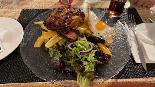 On a donc pendant notre séjour; tout naturellement essayé le restaurant. Tout est parfait la cuisson à la flamme de feu de bois est excellente que ce soit pour les légumes que pour les viandes. Cela a vraiment été un régal; tarification très correcte (pour de la boisson/plat/dessert).