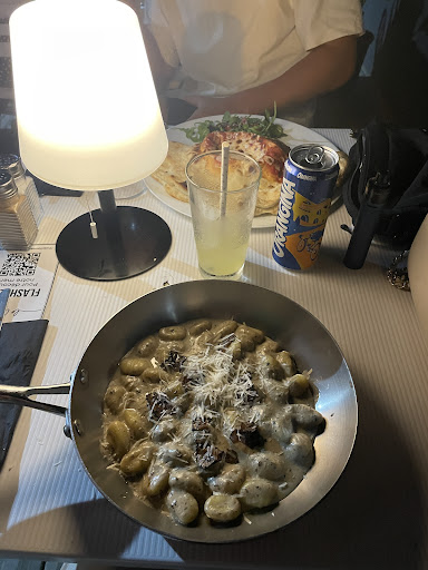Read moreJe suis mitigée à propos de ce restaurant. A la fois la cuisine est bonne mais le service laisse à désirer. Nous avons attendus 20 minutes avant que le serveur viennent nous voir pour prendre la commande. Je voulais commander des gnocchis XXL mais il n’y en avait pas le soir ou j’y suis allé. Donc je demande des gnocchis normales mais là encore, il n’y en a plus… Je tente une troisième option et heureusement celle-ci fonctionne (les pâtes aux truffes). Pour mon compagnon, la pizza qu’il voulait aussi n’étant pas disponible, il s’est rabattu sur une calzone. Tous les deux étaient très bons je tiens à le préciser. Au niveau des boissons, je commande un vin blanc mais la aussi, ils n’en ont plus… Mon compagnon qu’en a lui a commander un cocktail alcoolisé dans lequel il n’y avait pas d’alcool (je l’ai goûté aussi). Il a renvoyé le cocktail en demandant aussitôt un autre. En revenant, le cocktail était exactement pareil qu’au début. Il commande donc une bière qui est une...