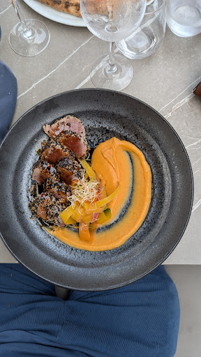 We really enjoyed. We stumbled on it by chance and were welcomed and given lots of help as the waiter spoke good English. I asked for a recommendation and out came a fish splayed with the spine and bones removed. It was beautiful white meat with the belly full of clams mussels and baby occy- also capsicum and eggplant. Complementing this was a cucumber mousse and mushroom risotto. Probably not a dish I would normally order but really glad I did. Went beautifully with some cool Rose. We had experienced other places where they were damn rude and couldn’t give a toss but this one...