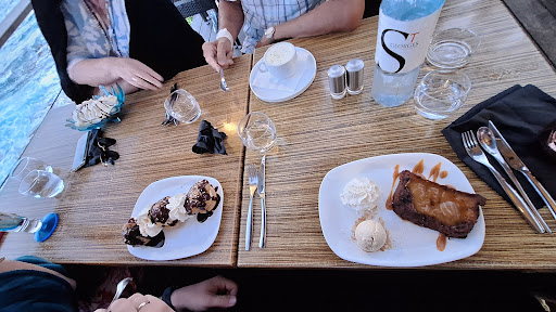 L'endroit est vraiment chouette, juste au bord de l'eau avec une très belle vue. Une fois le trafic du soir passé on se laisse bercer par le bruit des vagues. Le personnel est accueillant, souriant et enthousiaste. La carte offre pas mal de choix, de l'apéro, plat et dessert. Les poissons du jour vous sont présentés et vous pouvez choisir. Jusque là tout allait bien. On vous informe du poids du poisson (dans les 45/50euros le plat du coup). Allé, c'est les vacances, on se fait plaisir on ne va pas le regretter. On commande même un peu de vin pour pouvoir savourer ce plat de luxe. Le plat arrive. Désillusion totale. La présentation n'est pas soignée, le poisson gît là échoué, à côté de 2 Courgettes et 1 champignon qui se battent en duel. Aucun assaisonnement. Ça a même refroidit le riz, tout était froid. Mais on a eu une lueur d'espoir en voyant le pot de mayonnaise ! Pas de chance, elle non plus n'avait pas eu le droit à un assaisonnement et n'a pas pu empêcher le naufrage. Le chapon fut tout de même une belle découverte gustative (à ce moment on se raccroche à ce qu'on peut, pour oublier les 50 euros). Sincères comme on est on en fait part au serveur, peut être que le cuisinier ne se sentait pas très bie', il fallait lui venir en aide ;). La cuisine s'excuse. OK. On se laisse convaincre par un dessert, sans grande conviction. Mais le moelleux était bon, faut l'admettre (sinon c'était 1 *). On attend encore un geste quelconque pour nous ôter cette frustration du naufrage... Et le voilà : ils nous offrent le digestif ! Le même qu'ils offrent à tous leurs clients, comme tous les restaurants du coin d'ailleurs :). On espère jusqu'au bout, en attendant l'addition, peut être que.... L'apéritif sera offert ? :nada, rien, le vide néant. Dommage, cela aurait fait une étoile en plus et des frustrés en moins. Conclusion : la seule chose qui avait du goût, c'était l'addition et elle était salée. Nous ne recommandons pas. Il y a bien d'autres endroits qui offrent un rapport qualité prix plus honnête, même sans avoir les pieds dans l'eau :). Nos voisins, qui ont aussi retourné leur plat en cuisine seront probablement d'accord...
