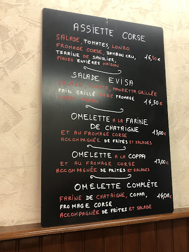 De passage à Évisa pour 2 jours, nous avons trouvé notre bonheur dans ce petit restaurant bar, qui propose de quoi ravir les papilles gourmandes ! Pour les plus pressés, de savoureux sandwichs et paninis à base de produits locaux, mais pour ceux qui peuvent se la couler douce un peu plus longtemps, je vous conseille fortement un repas en terrasse qui restera un vrai bonheur gustatif : omelette à la farine de châtaigne et au fromage corse ( succulente!), salades variées, figues confites maison (un régal !), sans oublier LE dessert inoubliable à base de glace à la châtaigne artisanale (et ses morceaux de marron glacé), de confiture de châtaigne maison…et de meringues /chantilly! Enfin, la palme revient aussi au patron et au serveur, tous deux forts sympathiques et conviviaux, adorables et souriants! Vous cherchez un endroit où être bien accueillis, servis et heureux…à Evisa?Vous savez désormais où vous rendre ;-) (Vous y trouverez également des conseils afin de découvrir ce joli village, dont les bassins naturels ! Super...