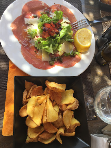 A EVITER !!!Très très déçus, attente de 50mn alors que trois tables ont été servies après que nous soyons arrivés, bouteille d'eau servie à température ambiante et si vous prenez le pichet de vin il n'est pas servi dans un seau à glace comme les bouteilles! après avoir patienté et vu le peu d'intérêt porté par le serveur ( roux ) très antipathique , nous demandons à quand allons pouvoir manger ( entrecôte choisie) il nous donne un cours de cuisine sur le chaud et froid en réponse! alors nous lui disons que nous allons régler notre vin et partir, un commis de cuisine se met à nous traiter de fous et nous insulte! hallucinant, d'autant que le serveur ( roux ) s'en mêle et nous menace méchamment aux yeux de la clientèle ! Les touristes sont pris pour des vaches à lait ici, si vous allez dans leur sens ça ira, mais si vous osez dire ce qui ne va pas, attendez vous à attirer leur colère mais pas leur remise en cause! allez-y à vos risques et périls ( deux...