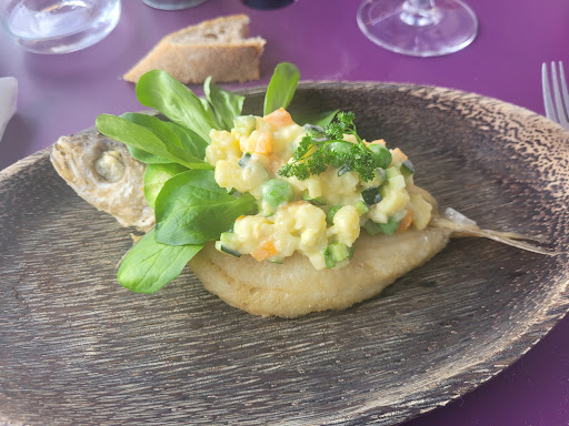 Read moreUne magnifique expérience gustative pour qui aime le poisson frais. Vous ne trouverez pas plus frais car Monsieur est pêcheur et Nadine, son épouse, apprête avec beaucoup de goût tant pour les yeux que les papilles la pêche de Monsieur. Elle nous a réalisé une assiette composée d'un assortiment de poissons du golfe accompagné d'un délicieux écrasé de pomme de terre, de carottes et d'une sauce fabuleuse. Les desserts valent également le détour et l'émulsion de rose qui vient compléter pèche et framboises est tout simplement un délice. Le serveur est très sympathique, souriant et professionnel. Depuis la terrasse vous verrez Nadine œuvrer dans sa cuisine. Le restaurant m'avait été conseillé par des locaux et je ne peux que le...