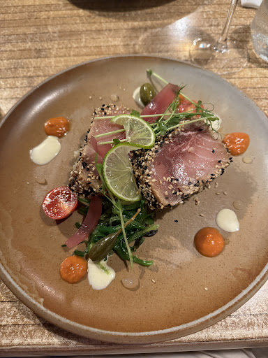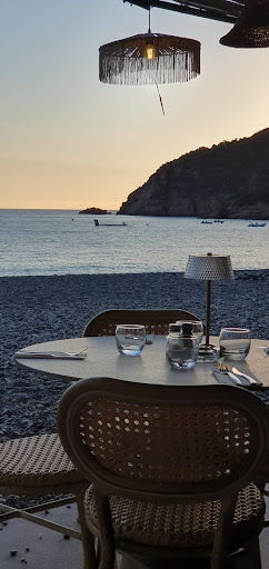 Terrible service. The waitress with the black band tattoo and solid black flower petal shaped tattoo on here left arm is the rudest person I’ve ever been served by. We asked if we could have a table for two near the beach after being sat near the bar, and she told me abruptly to ‘just sit down’. She then said the restaurant was fully booked (we sat at 19:45 and when we left at 22:00 half of the tables we asked to move to were still empty) so we couldn’t move. I said I understand that we couldn’t have a table for 4 next to the beach front, but asked if we could have one of the 3 two-person tables available on the side. She rolled here eyes and scoffed and said ‘if you’re not happy I’ll ask my manager’. She went to give menus to two other tables and was also rude to a table of 4 next to us. When I caught her eye after that she said ‘I’ve already told you it’s a no so what do you want’. I said can I ask why, at which point she threw her hands in the air and turned her back and walked off. I stayed polite to her because it’s never a good idea to annoy the person who brings you food, but she was angry and rude to everyone there. If it wasn’t such an isolated area and we were able to drive somewhere else we would have definitely left. The atmosphere in the restaurant was tense because of how rude she was, and it completely ruined the evening. The food, although overpriced (€6 for a water), was nice and was very...