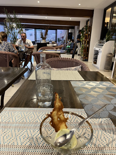 Read moreThe place has an excellent setting. Wonderful view of the mountains and the sea. The food is really really good and very fair prices. The place is popular amongst kiddy-families and therefore a bit noisy. But I would go anyway .. and sit on the terasse. The place is quit full and busy. Hence the busy staff but still nice.. . We recommend. Service is - due to business- between 3 and 4 stars. But all in all. Rather go a bit higher than lower in this case. The place deserves it. Also really good bread. Not just dry baguette .. but freshly baked. We had pizza, pasta and...