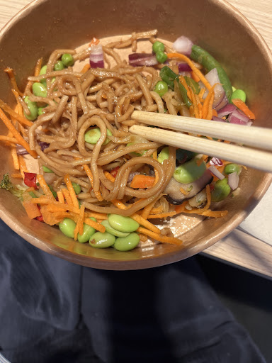 Read moreAlways obey the inner voice. It cried out loudly when I entered the shop. The effortful interior design can't hide the terrible food. Ramen, which you can get better as instant noodles in any Asian shop, and sushi variations that could make you vomit. Who, please, puts salmon and cream cheese in a maki and thinks that's really creative? What's more, the whole thing comes from the fridge in pre-packaged boxes. Fresh is different