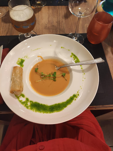 Read moreNous avons eu la surprise en arrivant du menu: 3 entrées dont 2 avec suppléments (4-5€), suivi de 3 plats dont toujours 2 avec suppléments puis les quelques dessert dont un sans supplément. Impossible de prendre entrée+ plat ou plat + dessert. Nous avons eu la surprise en milieu de repas de ne plus avoir de pain et limite l'eau devenait payante. Les plats étant bien décoré mais peu garnis, ainsi que le service passable (nous avions demandé de ne pas mettre de chutney dans le plat (car nous n'aimions pas) mais arrivé au service du plat, surprise le chutney en faisait parti, il a fallut se justifier pour ne pas en avoir ( on nous a même demandé si on était allergique à celui-ci), normalement ils doivent faire en sorte que le client soit bien servi mais ça n'a pas été le cas. Les desserts n'ont pas été à la hauteur non plus du prix. Rapport...