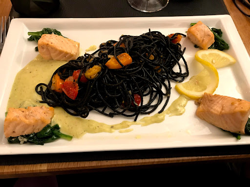 Read moreNa een gezellige wandeling op de markt van Barjac besloten we met 6 volwassenen en 3 kinderen te lunchen op het terras van 7Ici. Warm weer... Ik smachtte naar een frisse cola, helaas... Cola op kamertemperatuur en glas met klein gesmolten ijsblokje. Er wordt spontaan geen water op tafel gezet in tegenstelling tot alle andere restaurants die we tijdens onze reis bezochten. We kregen de vraag om de 3 kinderen eerst te laten eten waarna ze vergaten om de maaltijden van de volwassenen op te nemen. Bijzonder... Kindermenu is enkel een onvoldoende gebakken hamburger met frietjes zonder groenten of appelmoes. Naar mijn gevoel moet je echt álles vragen. Meisjes die opdienen hebben geen overzicht van het terras. Drank wordt niet spontaan opgenomen. Op het terras merkten we geregeld een vuilnisbakgeur. Eens het eten op tafel kwam, werden we plots vergezeld van Spaanse vliegen. De zalm is wel lekker: goed gebakken, lekkere warme groenten, smakelijke saus. Niet direct voor...