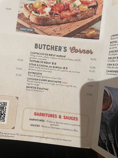La carte est hyper prometteuse, elle change puisque orientée pub avec ses assiettes type Brunch Anglais qu'on ne trouvait pas encore sur Alès. Cependant, la qualité peine à être au RDV et surtout les quantités sont actuellement trop justes ! Lorsqu'on paie son plat entre 15 et 20 euros, on s'attend à des assiettes un peu plus fourni pour sortir de table rassasié ce qui n'a pas été notre cas. D'autre part, certains plats pourraient bénéficier de produits frais et locaux au lieu d'industriels et surgelés.