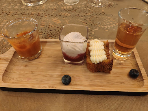 Read moreLe cadre est original malheureusement je suis obligée de revoir mon avis laissé en amont... Les prix ne font qu'augmenter et la quantité diminue drastiquement en plus... Pour exemple: Une planche tapas à 48e avec quelques tranches de saucisson et chorizo coupés tres fines et 4 tranches de jambon cru, 1 pelardon qui se perdait dans Le reste remplis de crudités et petits fruits (dont du melon pas mur, et attention nous avons eu de la peau d'oignon ? et quelques framboises avec du moisi... ) (ps: le petit taboulet n'a pas été à notre goût, trop de persil et noyé dans le citron)