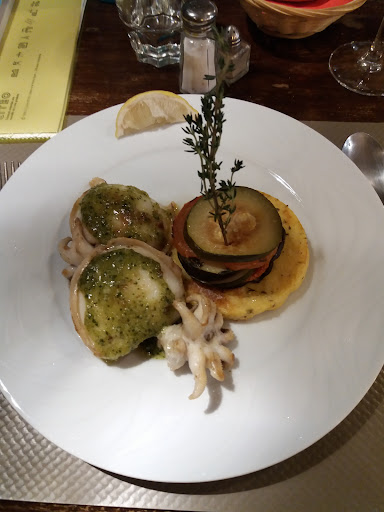 Read moreLa serveuse est gentille, certes mais ça ne suffit pas. Une entrée ridicule : une 1/2 cosse de petit pois avec 4 rosaces de mousse menthe-petits pois, surmontées de 6 petits pois ... Un thon "façon parmentier" sans aucune saveur, car le thon étant coupé en petit dès, il n'était pas besoin d'être "grand cuisinier" pour deviner que ça allait fatalement être trop cuit. Ça, surmonté de l'éternel et facile "crumble" que l'on met maintenant à toutes les sauces, ça tenait plus du plâtra de cantine que d'un plat de restaurant. C'est vrai qu'ils m'ont proposé de me le refaire, mais le dîner était dès lors complètement gâché, j'ai donc préféré laisser l'assiette en l'état, sans la terminer. Cerise sur le gâteau, la manche de ma chemise restait collée sur la table tant elle était "collante" et quand j'ai voulu soulever le set de table pour voir ce qui produisait cela, il s'est carrément déchiré en deux, une partie restant définitivement collée à la table ... il était donc temps que cela s'arrête. Donc ... je suis venu, j'ai vu mais je n'y...