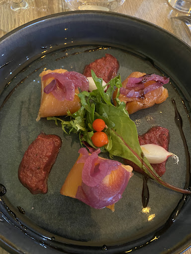 Read moreExcellente découverte. Un repas comme on les aime. Nous avons pris le menu à 39 euros. Le foie gras de l'entrée était très bien assaisonné. La température parfaite, servi avec du pain grillé et un chutney très original. Le plat, poire d'Aubrac sauce morilles a été mon grand coup de coeur. La viand était très tendre, cuite juste comme demandé et surtout le jus épais aux morilles était délicieux, digne des plus grands. Les morilles étaient excellentes. Le dessert, Dôme façon Pavlova, était très original avec une glace poire au vin jamais mangé jusque là. Le service était très efficace, souriant et présent juste ce qu'il fallait. La salle qui lors de mes recherches me paraissait austère, ne l'était pas du tout. Pas trop de bruit, une vaisselle de qualité et originale pour chaque plat. Qualité prix, vraiment très bon. Je recommande et me...