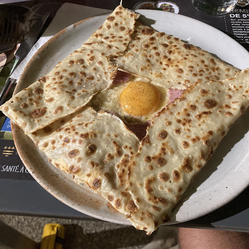 Read moreSi vous cherchez à manger une "galette bretonne" passez votre chemin; Ici ne sont servies que des crêpes au froment, et quelques unes à la farine de châtaigne. Peu de fantaisie dans le menu des crêpes, très basique et pauvre. Lorsqu'on demande des informations, l'on nous répond que les portions sont copieuses...nous ne demandons qu'à voir. Résultat : dans nos assiettes une pauvre petite crêpe au froment dont les ingrédients étaient de surcroit soit en boite, soit mal cuisinés et le tout servi quasiment froid. Un repas que l'on a vite fait d'engloutir plus par rage que par faim. Lorsqu'on nous demande le fatidique "ça a été" et que l'on ne répond pas comme il le souhaite, le serveur, pas bien agréable depuis le début, en rajoute une couche en essayant de nous prouver que l'on ne sait pas de quoi l'on parle, en comparant l'incomparable (une salade - froide- à une crêpe !) Bilan : un petit restaurant tout de même joli par son cadre rustique et peut-être bon si l'on commande autre chose que des crêpes. Sinon, un stand de crêpes dans la rue fera largement l'affaire niveau...