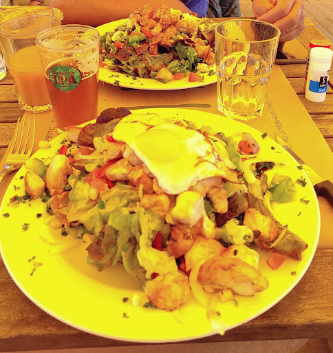 Read moreWas invited by the owner of another restaurant. We both chose salads as do most of the people eating here. We were on the terrace under a yellow tent like structure so pictures didn't come out. My salad was a HUGE hot chef's salad with a nice mixed salad and large pieces of hot chicken and a fried egg on top. It was very good. I also had a Corsican draft IPA which I liked although I was hoping for a local draft which they didn't carry. I followed All that with an ice cream but I forgot the name. It was big and delicious too. I remember the salad was...